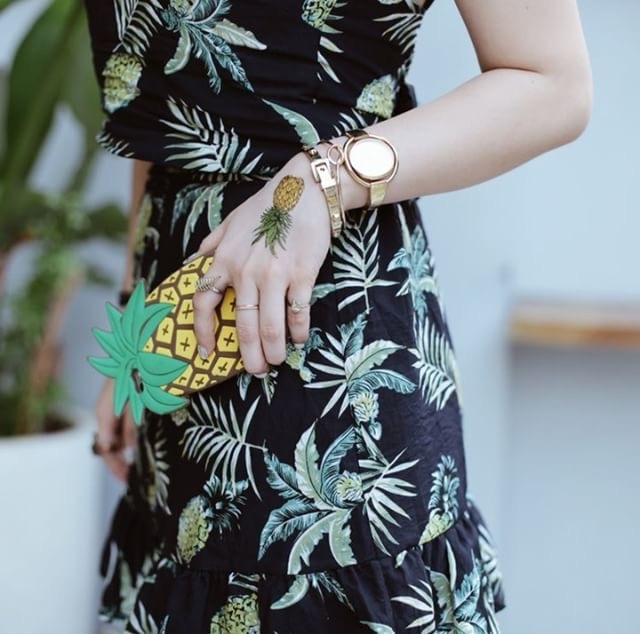 充滿熱情與風情的熱帶水果"鳳梨 ",胖嘟嘟的超可愛!運用繽紛亮眼的色彩表現,讓夏日風格更奔放自由。