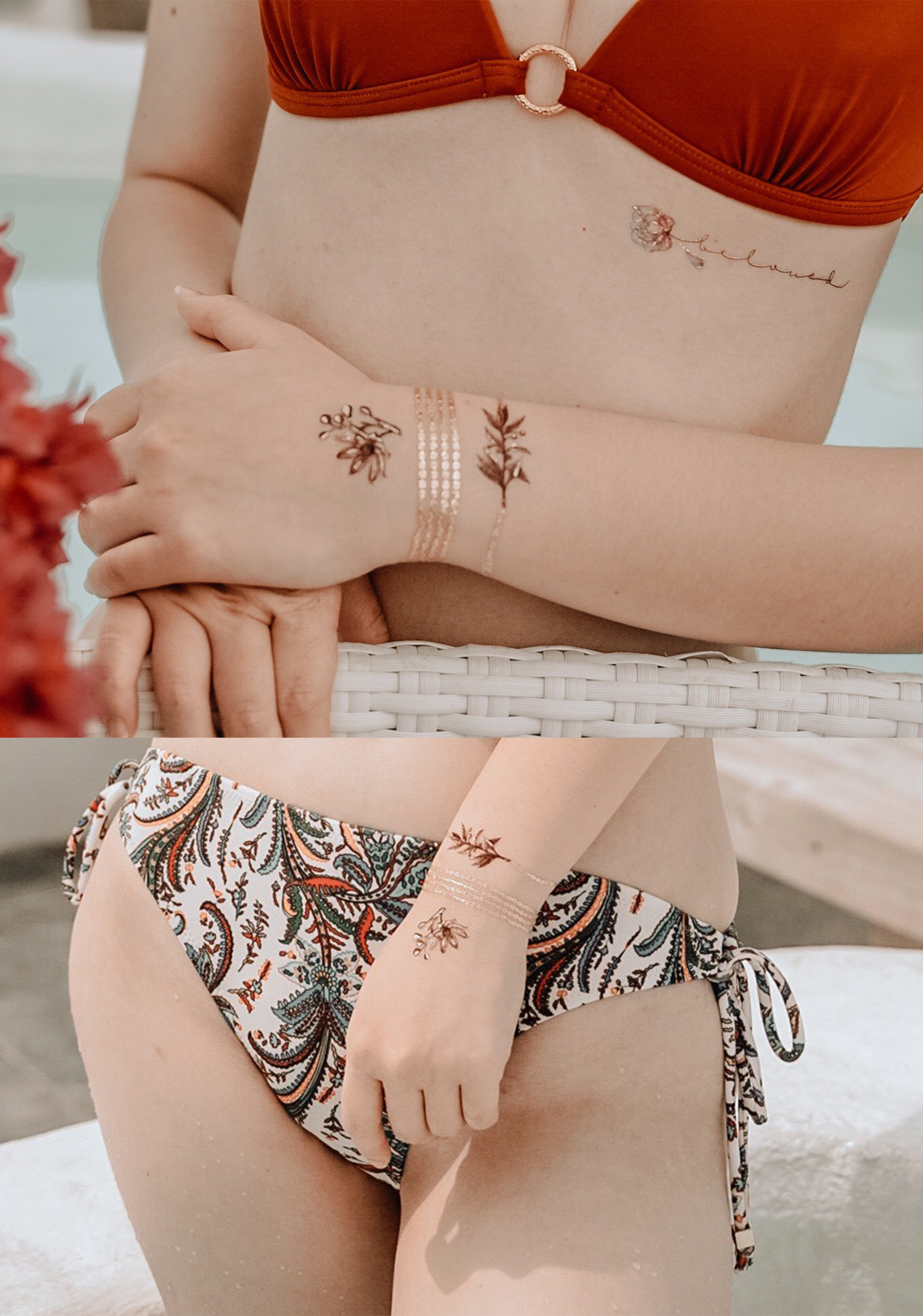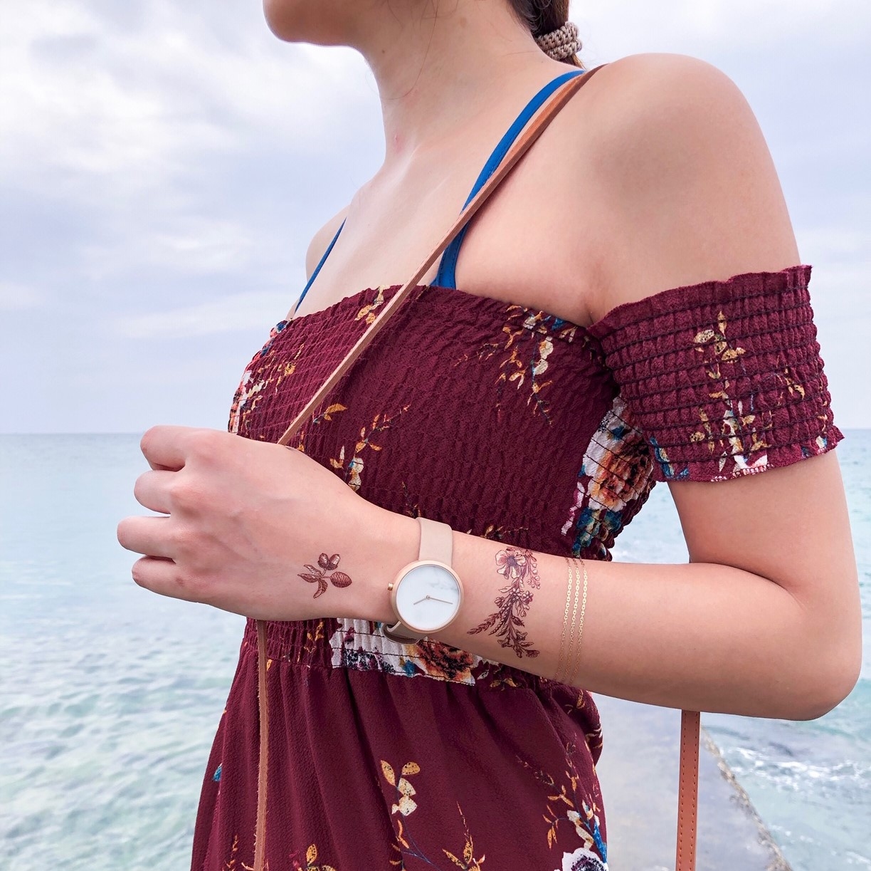 貼在手臂內側背景搭配湛藍的海或夏日藝術品,也能秒有異國風情的特色。