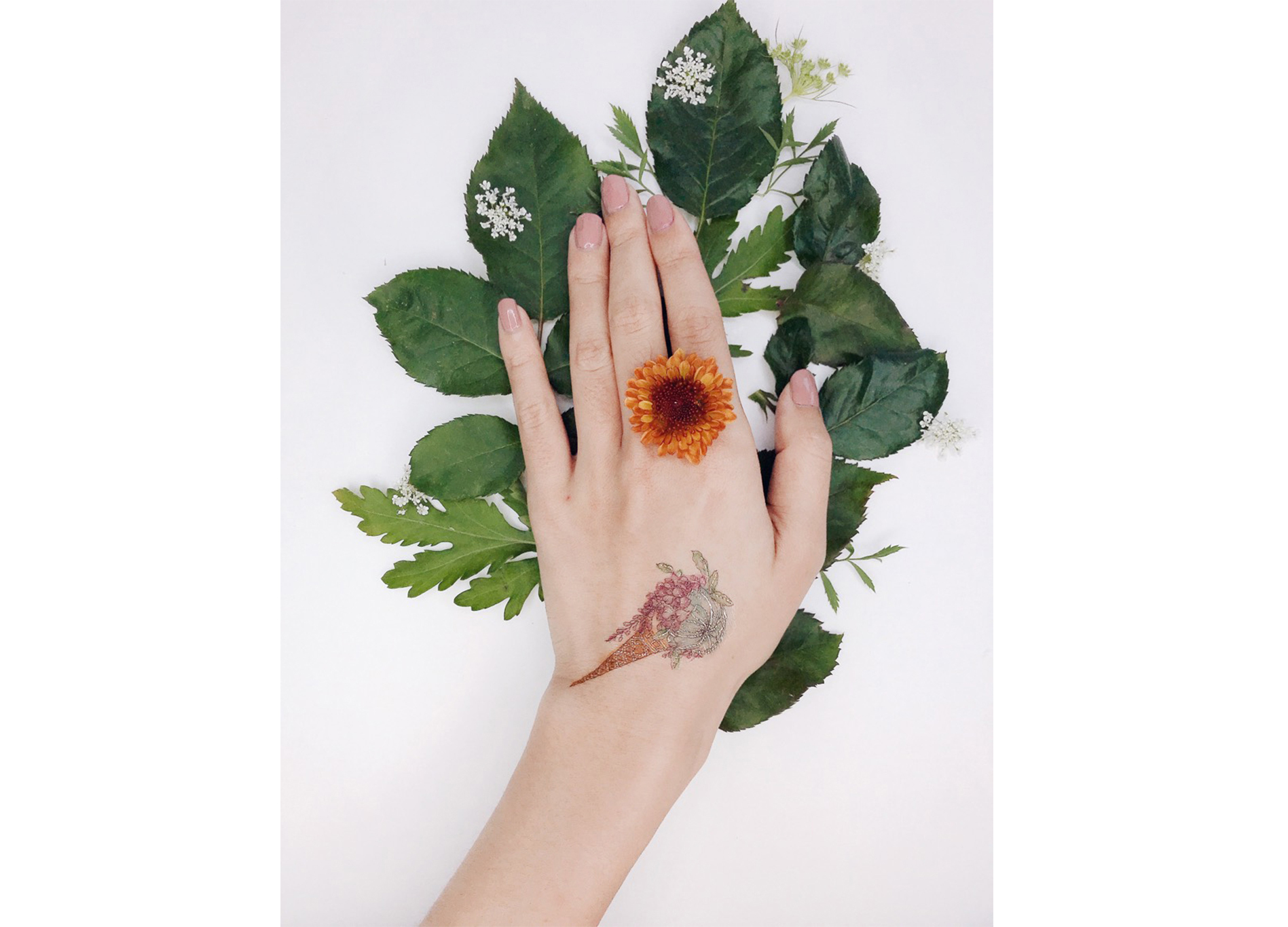 從發想、草稿、配色、繪圖到水彩暈染的所有過程,我們的紋身也同時呼應插畫家的風格,