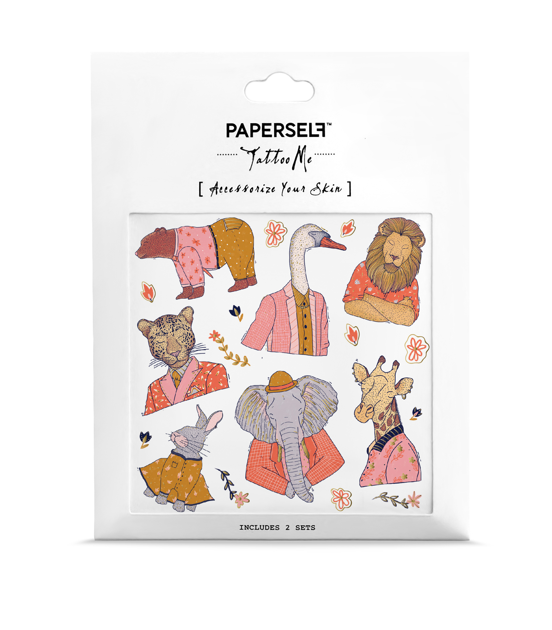 PAPERSELF刺青貼紙總共快200款,每一個圖案幾乎不重疊,用途也很廣泛(物品、紙、皮膚、指甲),設計新的圖案新的風格也必須多考量,讓不同風格的粉絲們都能夠買到適合自己的款式,隨著流行除了微刺青、文青極簡,將動物擬人化的風潮,緊抓著腳步以粉絲許願及熱門動物為主,推出了動物方程式。
