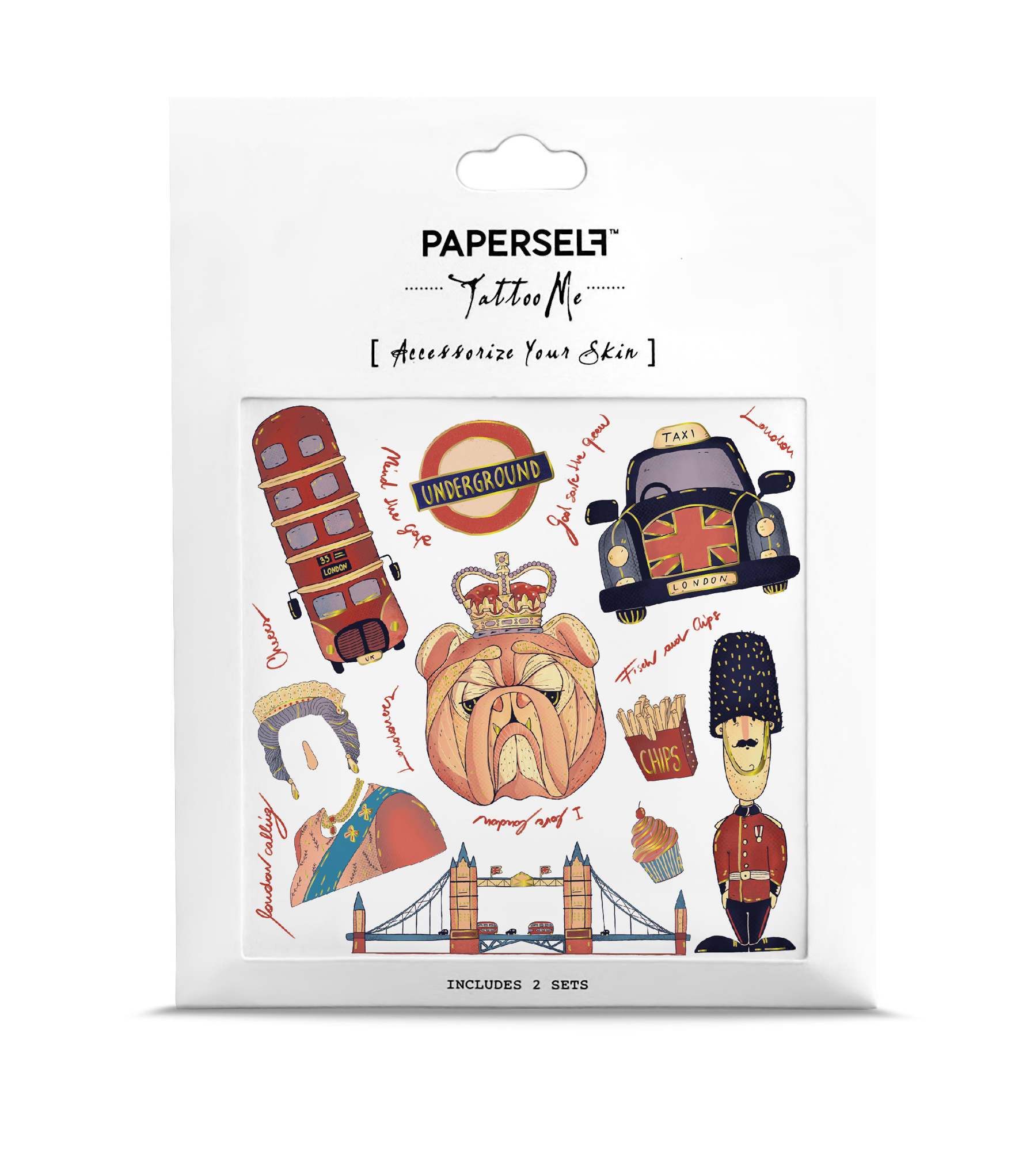 「PAPERSELF來自英國倫敦品牌」,這句話已經唸到要爛了,卻沒有出過真正代表英國的刺青,畫風英倫風格也代表著品牌來自英國倫敦,因此能與英國作為聯想又具象徵性來設計這款刺青的圖案。
