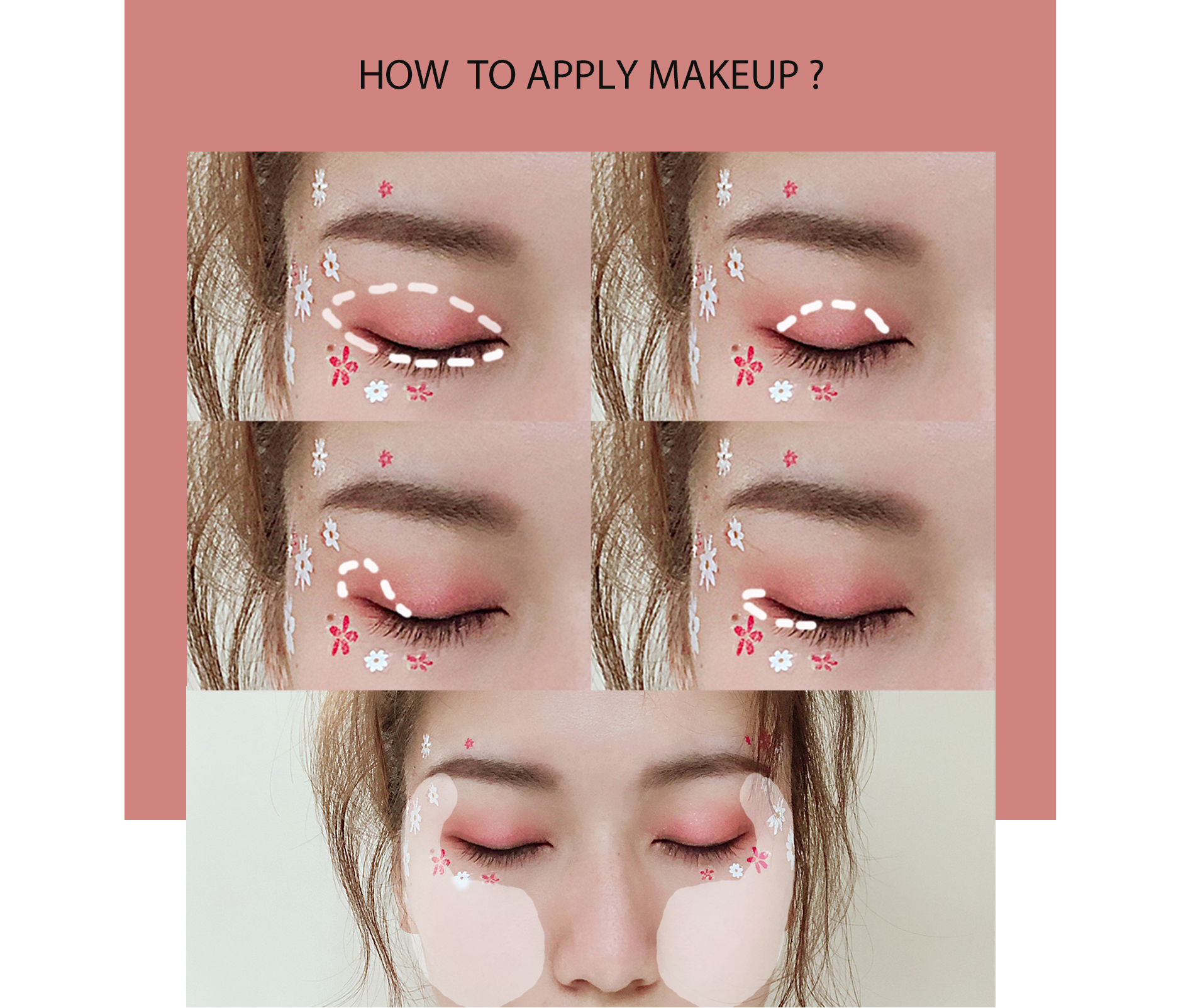 紋身 剪下一朵朵的小花,在太陽穴連接到眼下,一大一小一白一桃的方式貼上,