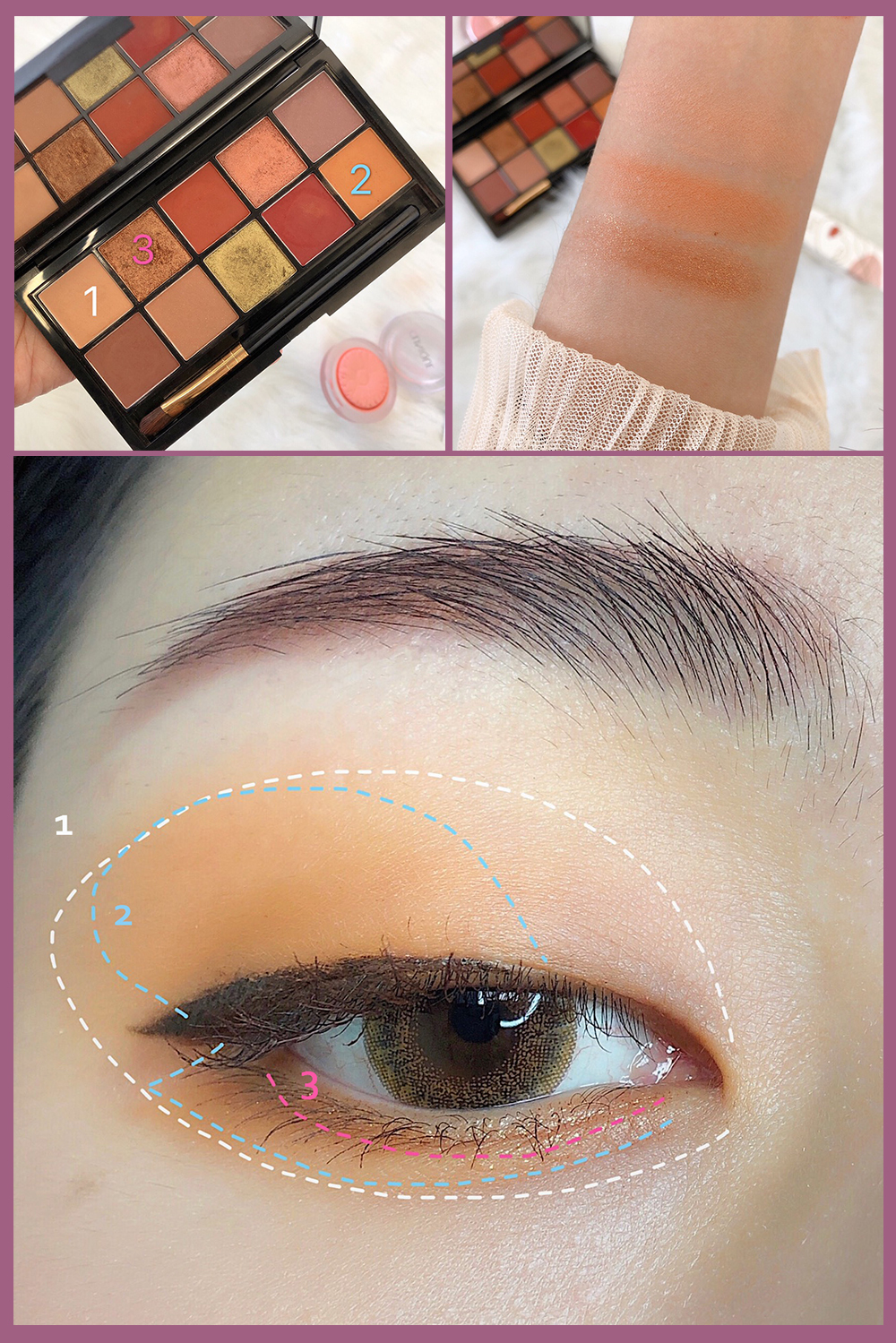 接下來最重要的眼影(VNK花間森與十色眼影盤),這次只用三種顏色,所以超簡單啦😆