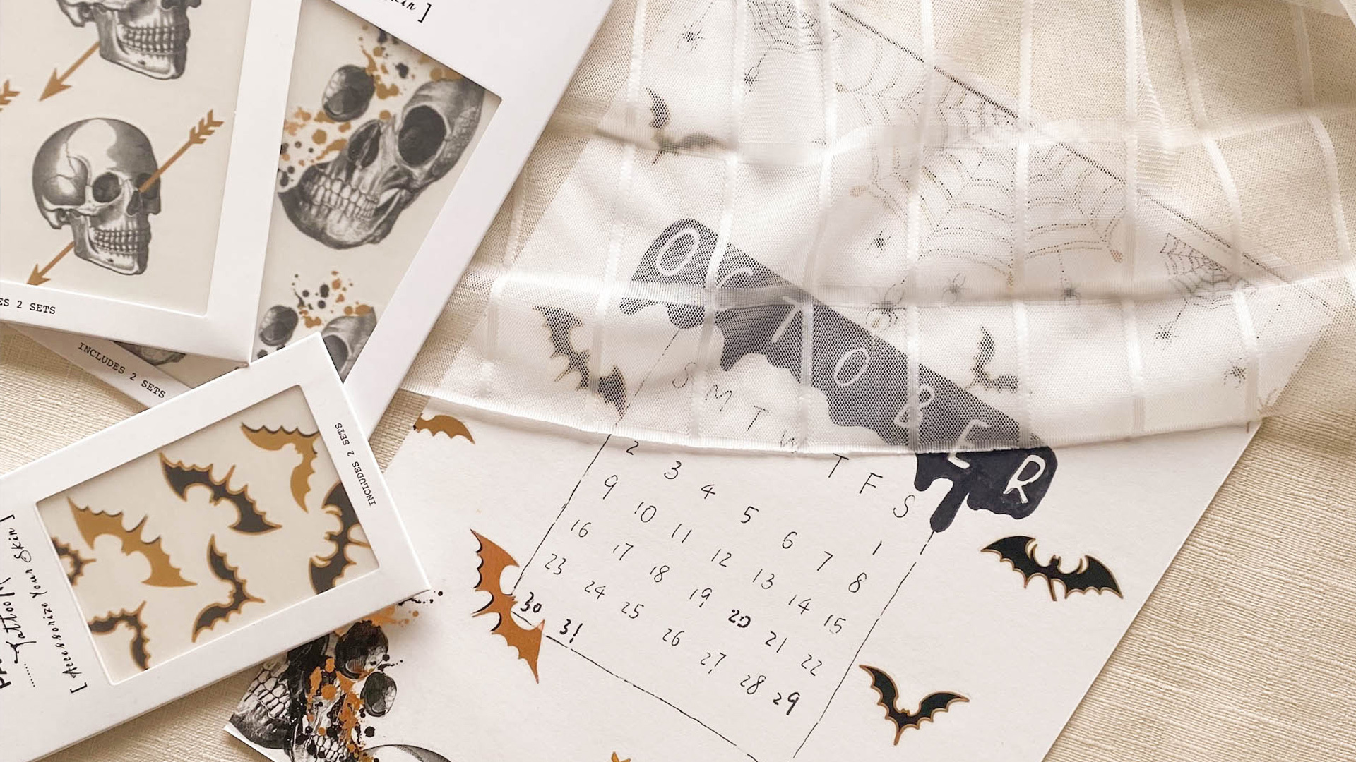 萬聖節手帳的設計以骷顱頭、蜘蛛、蝙蝠設計,畫面只有黑與金的配色,恐怖的氛圍卻帶點另類時髦~