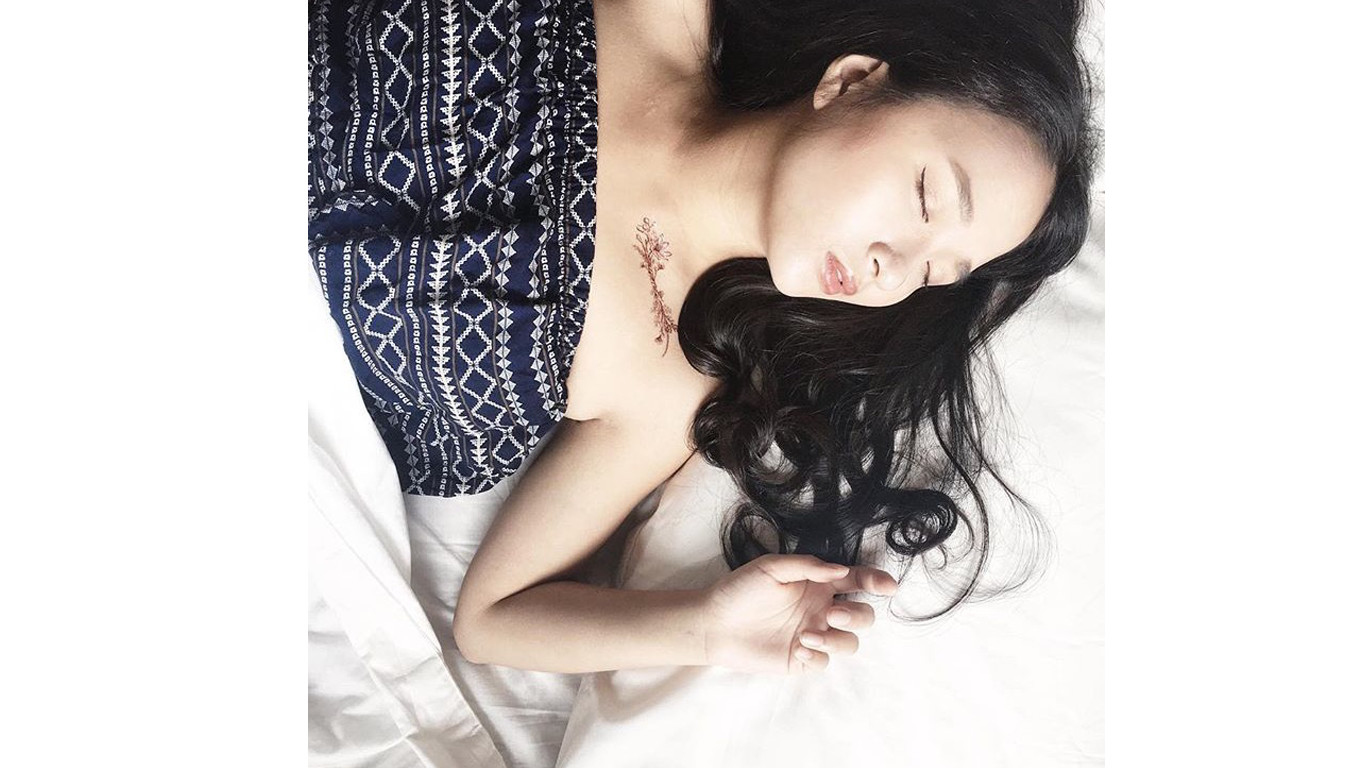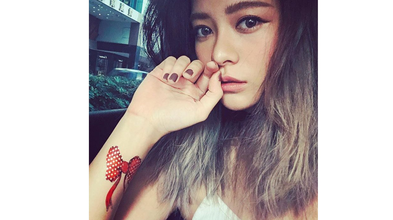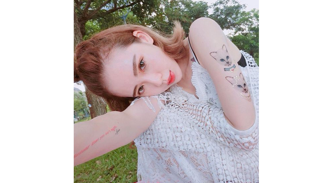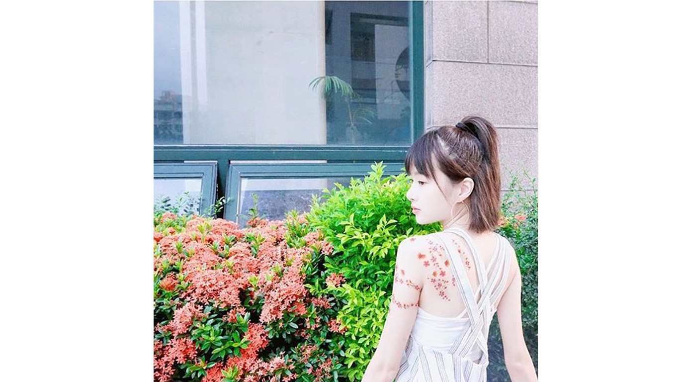 混搭我們的櫻花 、繽紛花園兩款tattoo,唯美中也完全駕馭了梁洛施式帥氣。