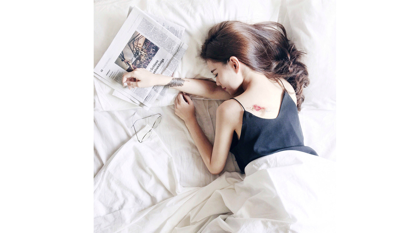 @amytravelife Sara的好朋友Amy,溫暖的午後陽光灑落在酒紅色的勃根第花園tattoo,配上穿平口的肩,美的剛好。