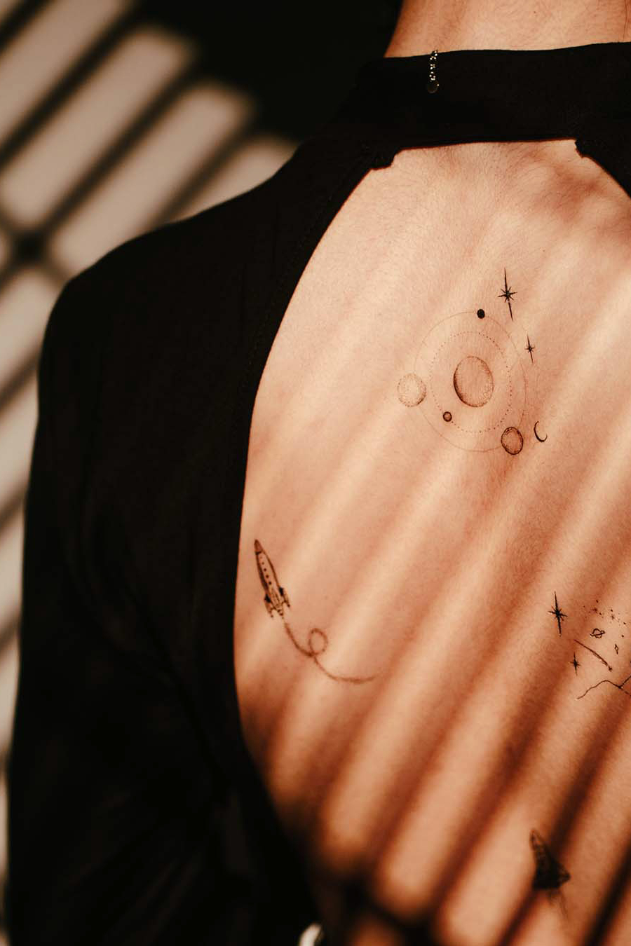 以點刺青呈現星際,仿真的設計讓整體質感升級。