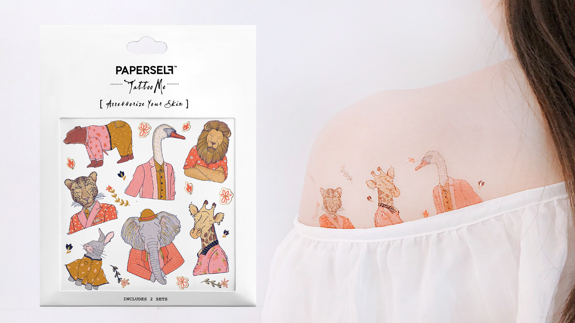 PAPERSELF的刺青貼紙十分重視色彩的運用以及細膩的細節,在多彩飽和的色彩基準上加入與市面不同的金、銀質鑲邊更加襯托出圖騰的質感,經過無數個環節的完美組合,成就了這些小而精緻的時尚藝術,給正在找尋獨有個人風格特別的妳。