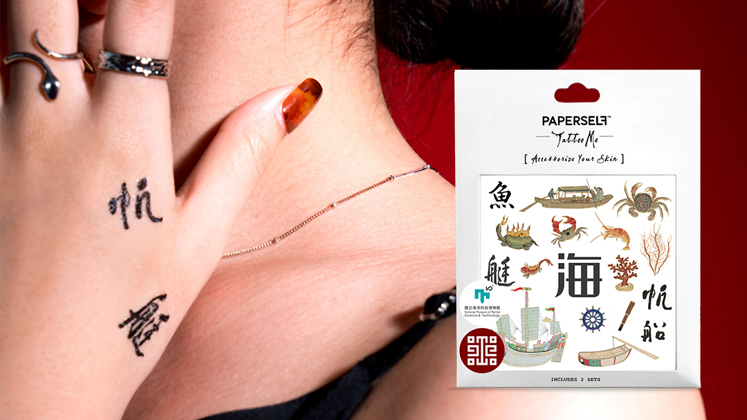 此商品創意來自於國立故宮博物院與國立海洋科技博物館三方聯名刺青貼紙。