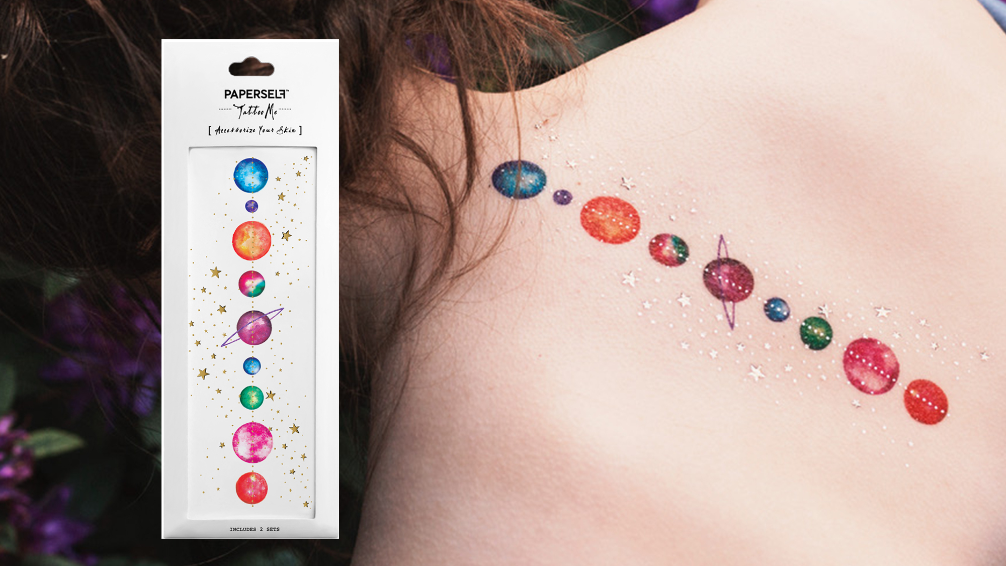 PAPERSELF的刺青貼紙十分重視色彩的運用以及細膩的細節,在多彩飽和的色彩基準上加入與市面不同的金、銀質鑲邊更加襯托出圖騰的質感,經過無數個環節的完美組合,成就了這些小而精緻的時尚藝術,給正在找尋獨有個人風格特別的妳。