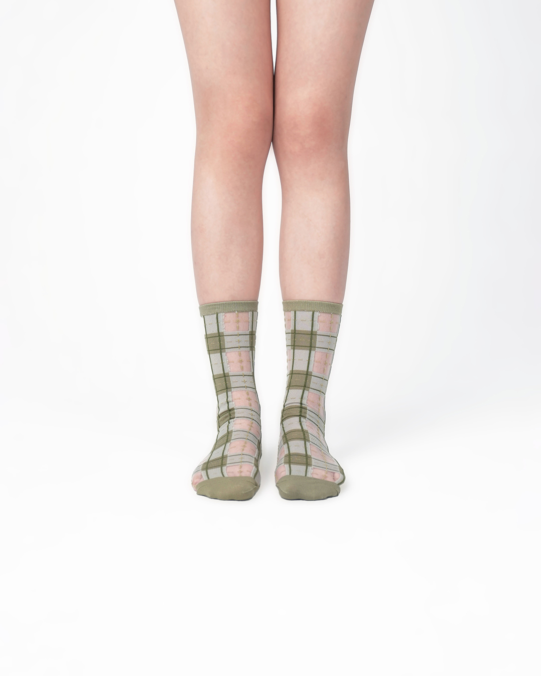 經典系列|鴿子灰-經典格紋透紗中筒襪