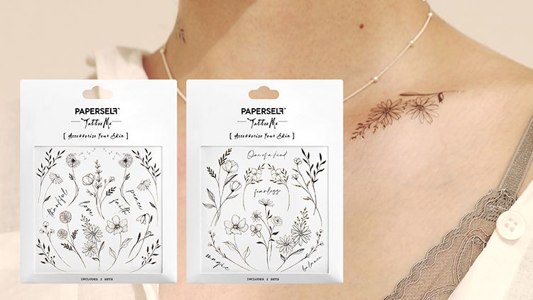 ♡經典的刺青花加上草寫字母增加搭配的多樣性